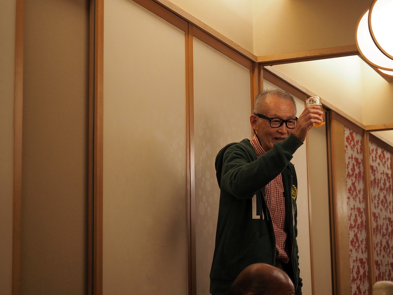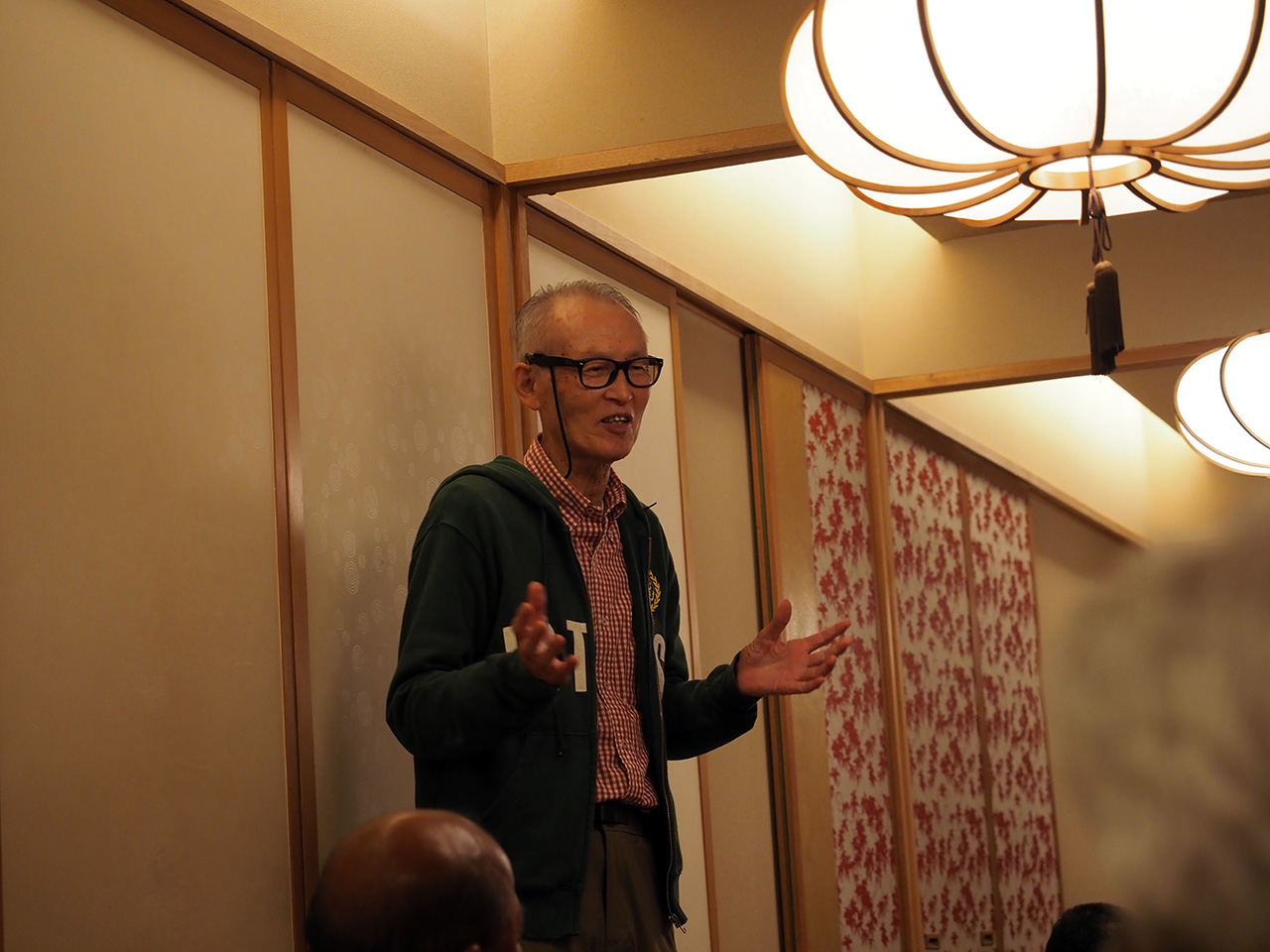 会食にあっては、遠方にもかかわらず山口県・石川県からの参加者、更にご当地・おすすめのお酒を持ち込んでいただき各席ごとに大いに盛り上がっていました。