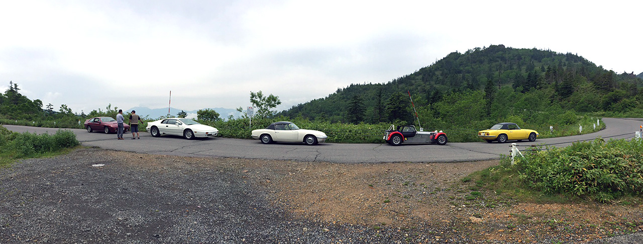 しかし、その後、草津方面へ分岐してからの道はロータス大好物の低速コーナーの連続!しかも昨夜の雨が残るウエット。幹事がアンダー/オーバーの繰り返しで四苦八苦していると、黄色いエランが後ろから横になりながら迫って来て…流石!